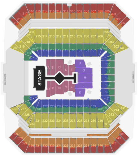 WC/ADA Seats: Please refer to the map below to see which color sections are closest to your seats.